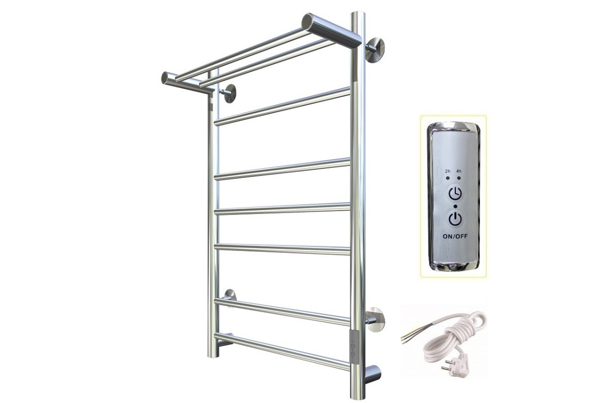 Экономичность: Полотенцесушитель снабжен панелью управления. Кнопка включения/выключения и таймер на 2 часа и 4 часа , который позволяет  включать изделие на ограниченное время. Эта функция дает возможность экономить электричество.