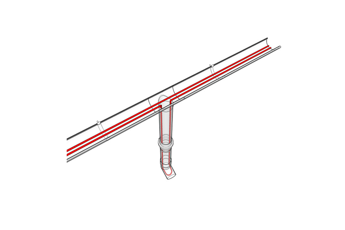 Греющий кабель прокладывается в местах где необходима защита от обледенения, скопления снега и льда: на карнизах, в водосборных воронках, стояках, желобах.