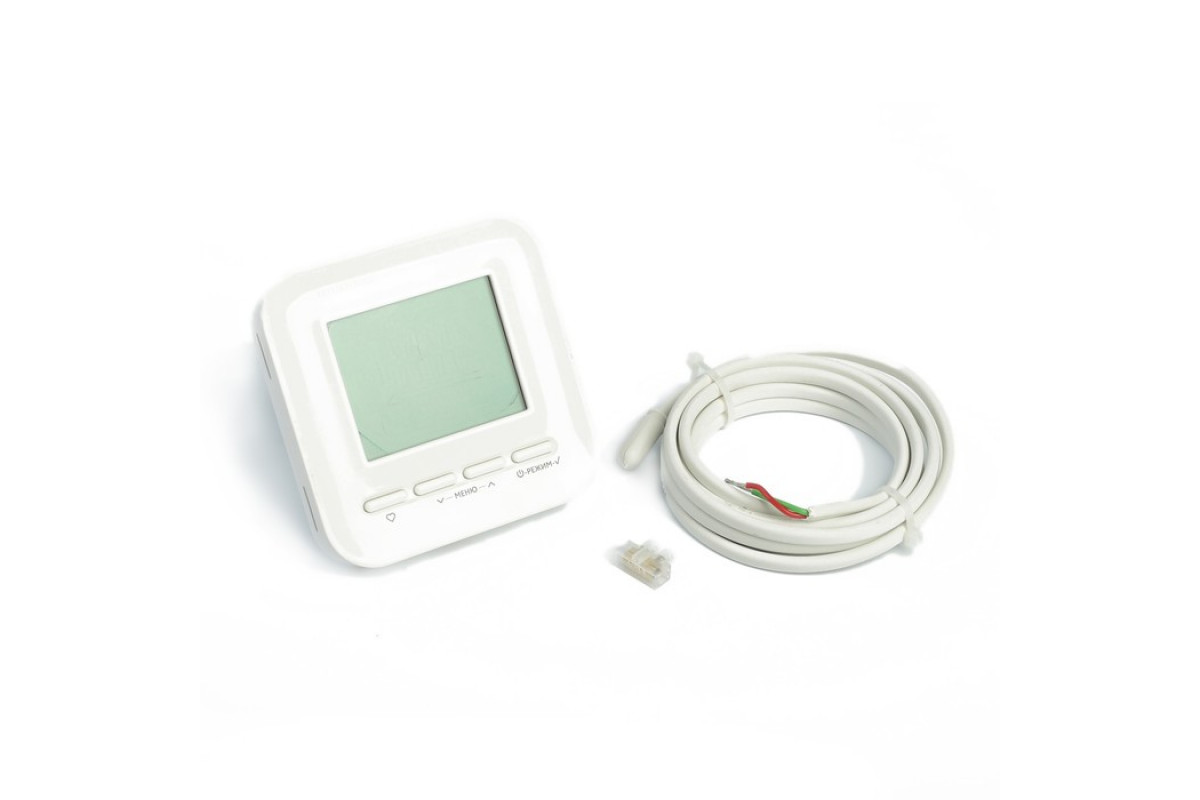 - Имеет 2 датчика температуры: выносной для пола и встроенный для воздуха