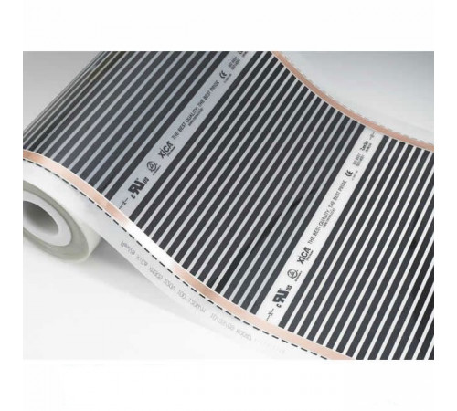 Полотно теплого пола представляет собой несколько рядов полос из углеродного материала 15 мм шириной. Полосы объединены между собой медными шинами с серебряным покрытием и служат для проведения электрического тока. Для защиты от влаги, механических воздействий и возгорания. Места прохождения нагревательного элемента заламинированы слоем плотного полимера, который не задерживает инфракрасные лучи.