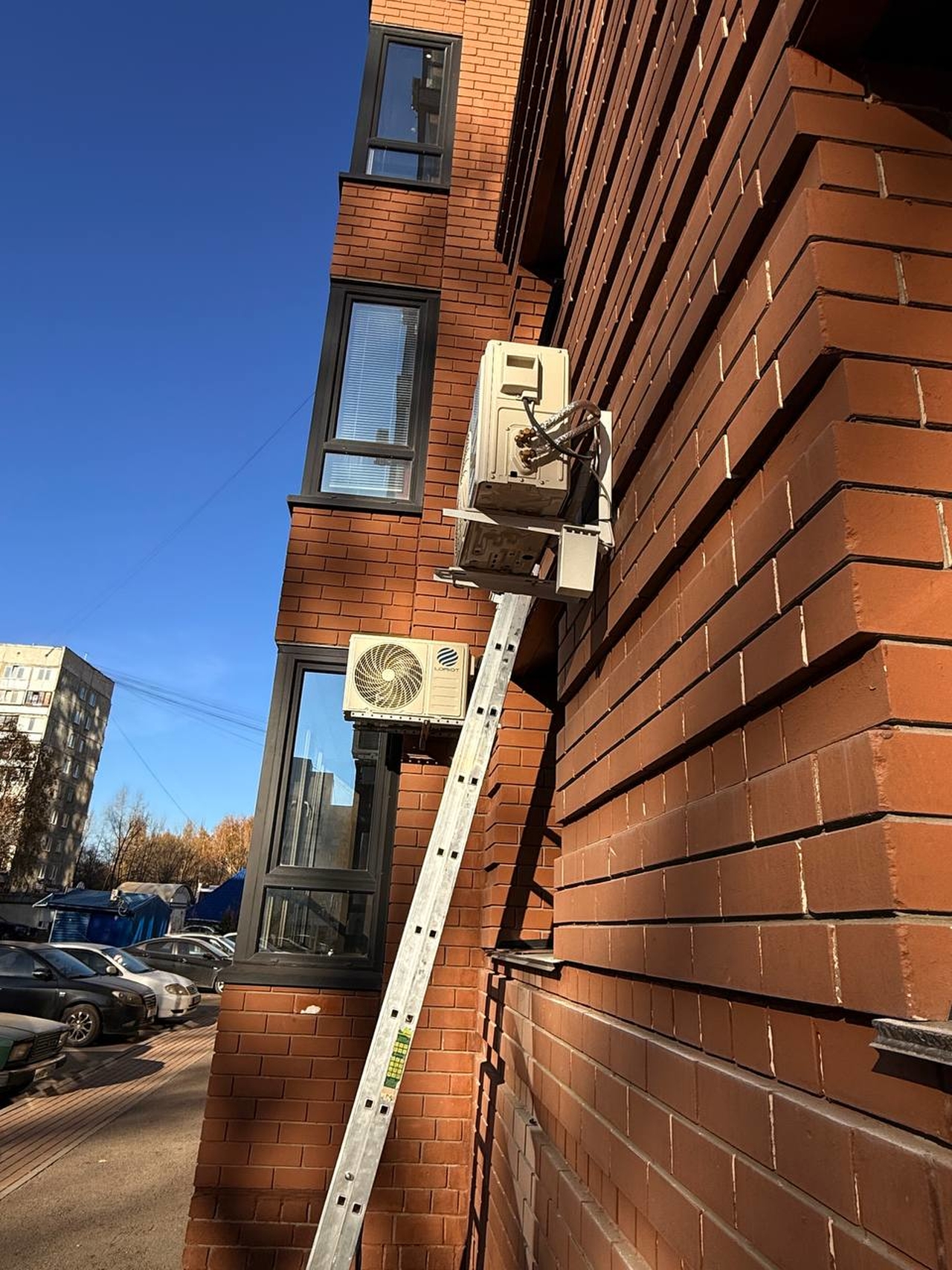 Наружный блок надёжно закреплён на антивибрационных кронштейнах, что исключает шум и вибрации.
