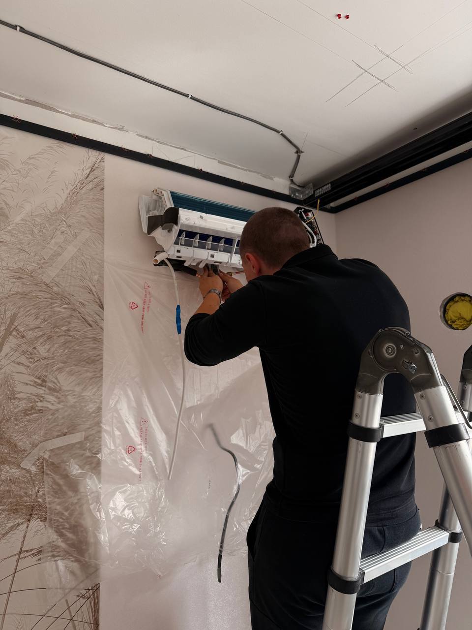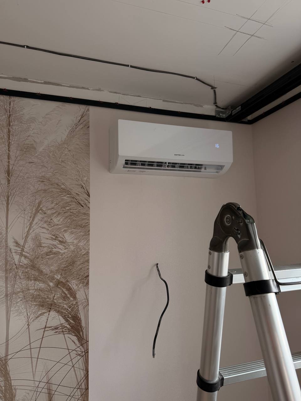 📐 Разметка трассы и установка внутреннего блока — с учётом геометрии помещения и направленности воздушного потока.