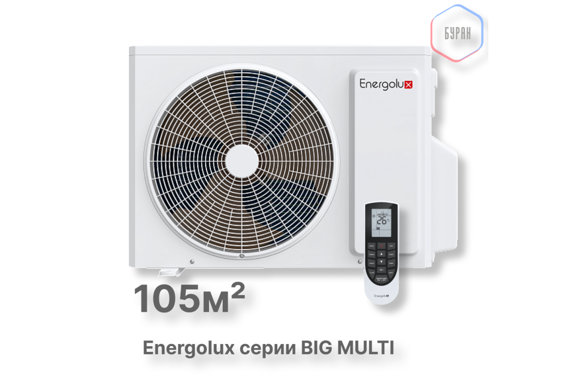 Наружный блок Energolux Big Multi Inverter SAM36M3-GI/4 – это оптимальное сочетание мощности, экономичности и надежности. Подарите себе идеальный микроклимат в любое время года!