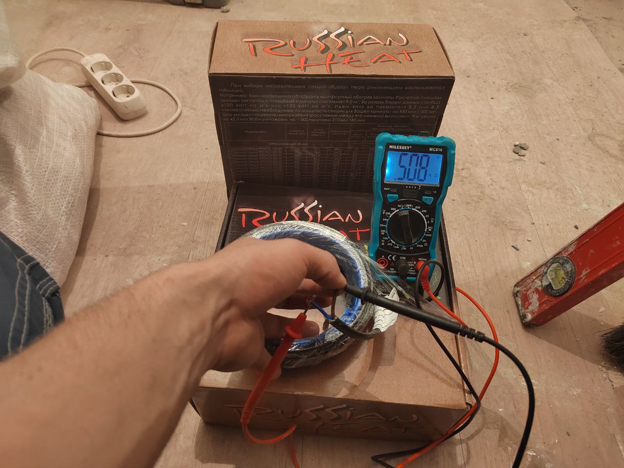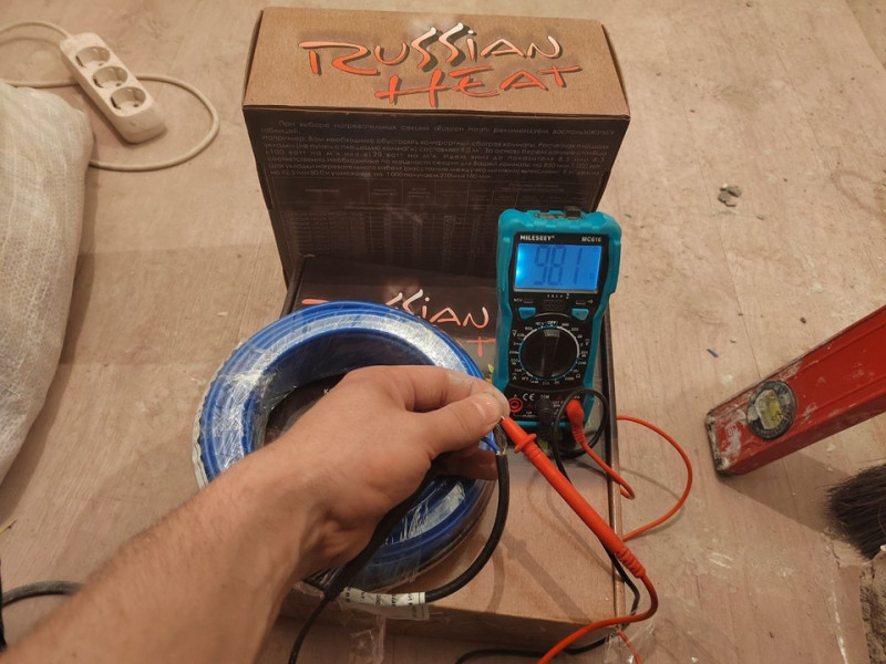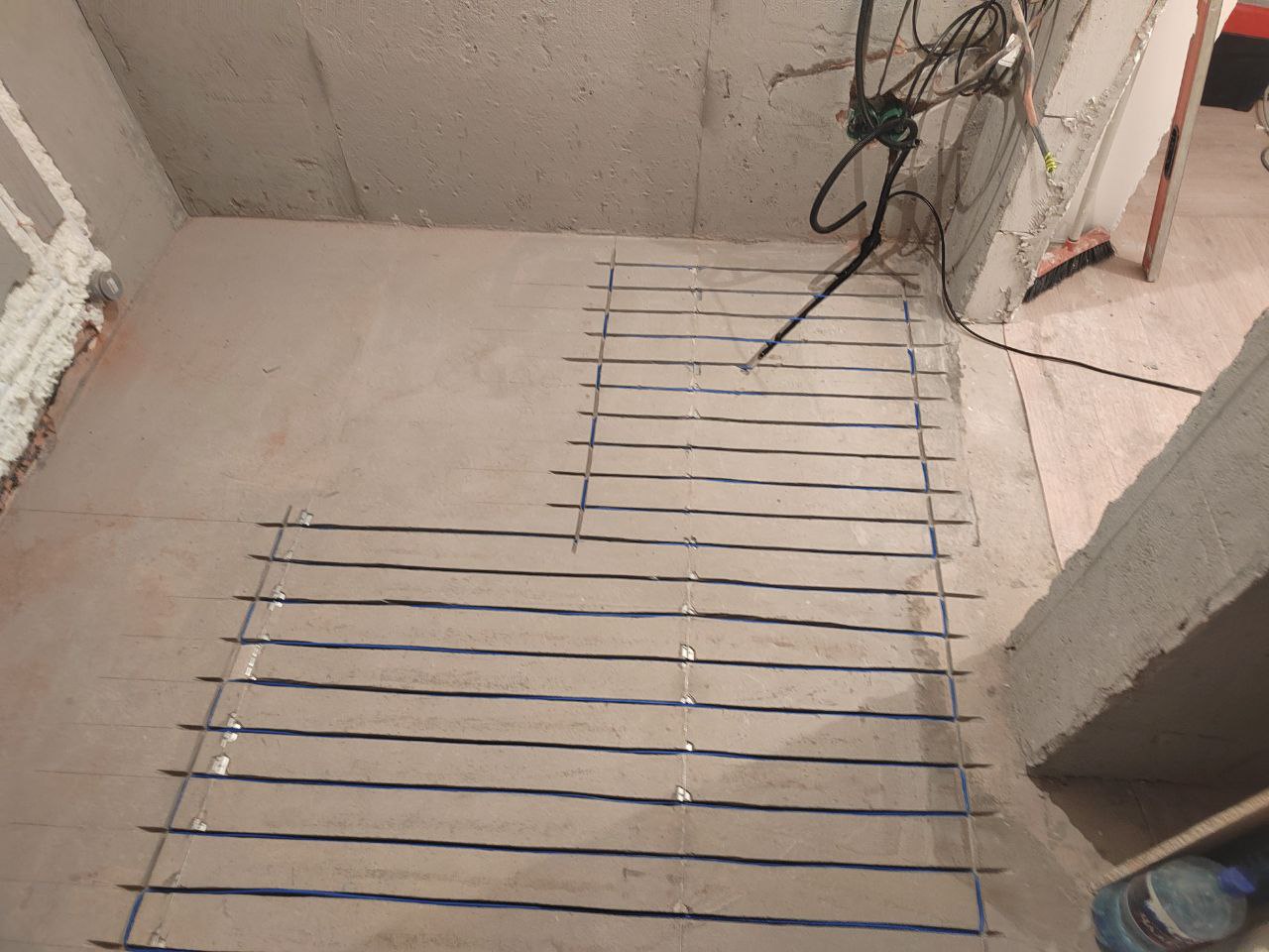 Наш опытный электрик Дмитрий профессионально выполнил укладку греющего кабеля Russian Heat — надёжного и эффективного решения для комфортного подогрева пола.