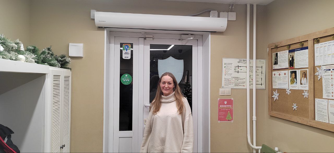 Дмитрий выполнил установку быстро, аккуратно и без перерывов в работе школы. Тепловая завеса была грамотно закреплена над дверью и подключена с соблюдением всех норм безопасности.