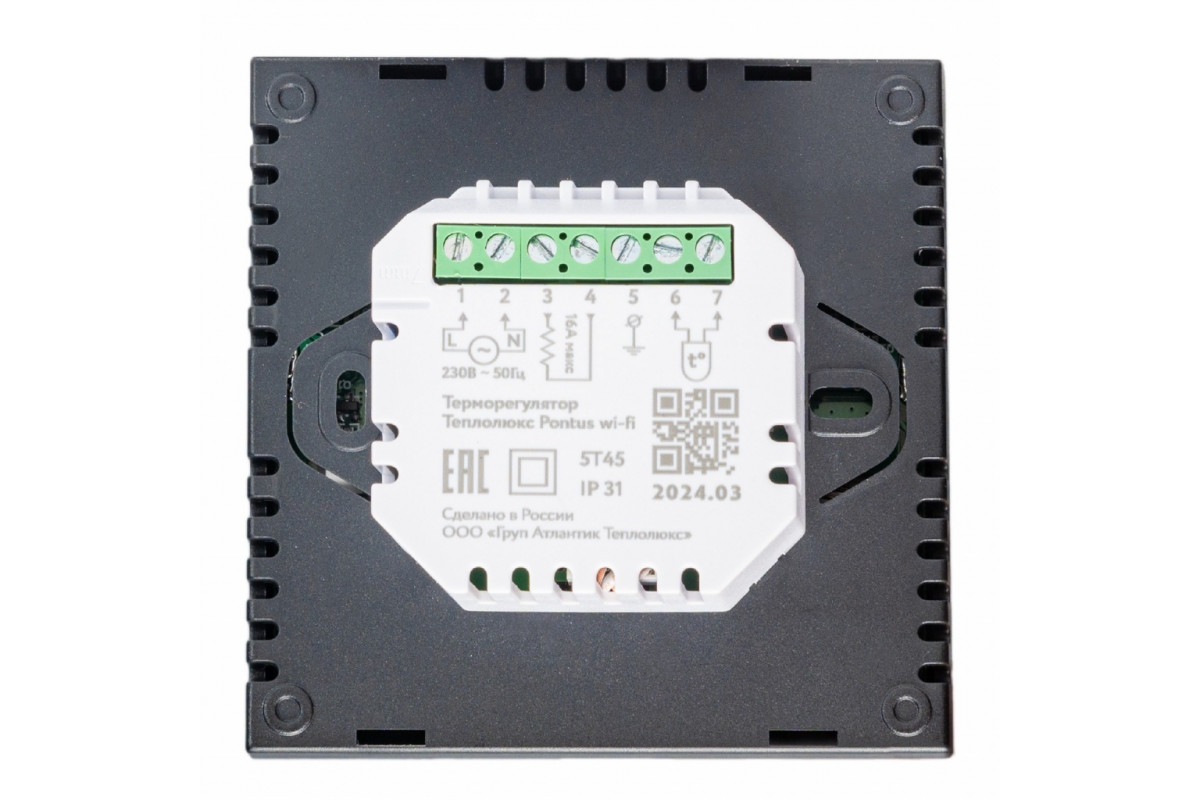 Терморегулятор поддерживает комфортную температуру обогреваемой поверхности и обеспечивает рациональный расход электроэнергии. Терморегулятор обеспечивает управление по двум датчикам температуры: пола и воздуха, как одновременно, так и по отдельности. Терморегулятор может осуществлять управление водяными теплыми полами при использовании термоголовки нормально закрытого типа с управлением 230В.