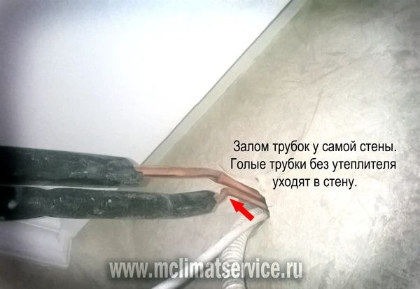 Перегибы, неверная длина и плохая вальцовка труб приводят к утечке фреона и снижению эффективности работы системы. - Ошибки вакуумирования