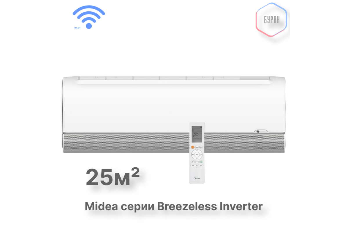 Выбирая Midea серии Breezeless, вы получаете не только стильный дизайн, но и передовые технологии, обеспечивающие эффективное и тихое охлаждение. Инверторная технология позволяет экономить электроэнергию, а встроенный Wi-Fi модуль обеспечивает удобное управление со смартфона. ​